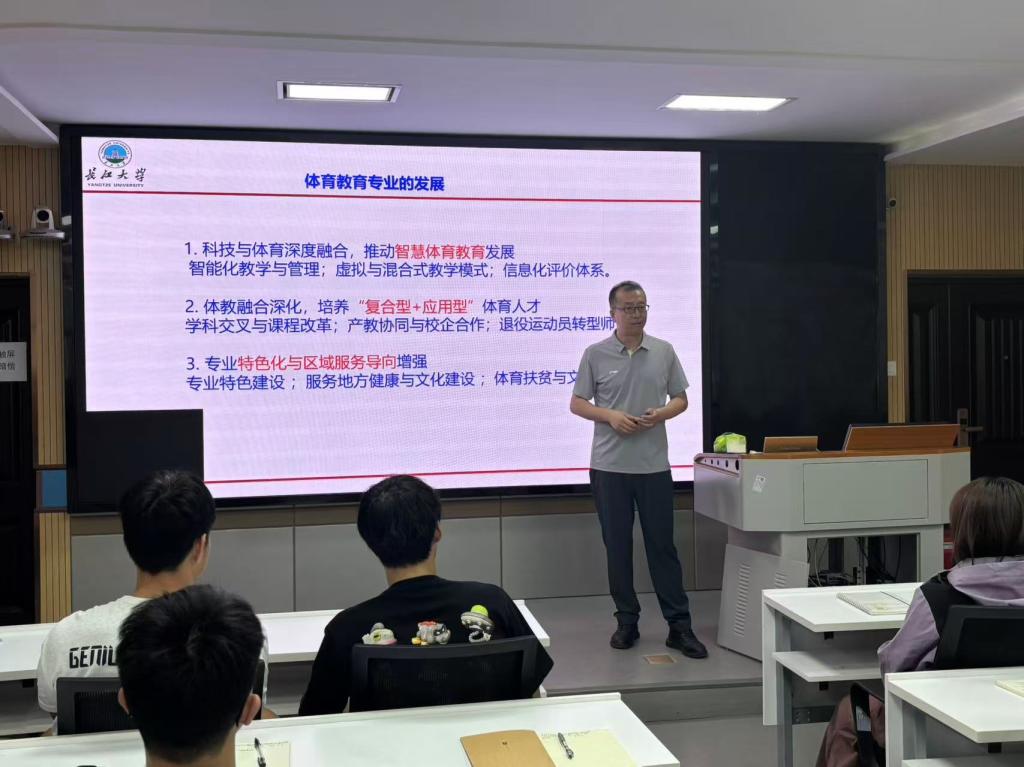 (通讯员 熊一铮)2025年 5月15日上午,bat365官网“求实导师学术沙龙”之《师范类专业认证背景下的高校体育教育专业建设与发展》在文科楼910举行,杨青宝副教授主讲,2024级体育类研究生参加了本次活动。
