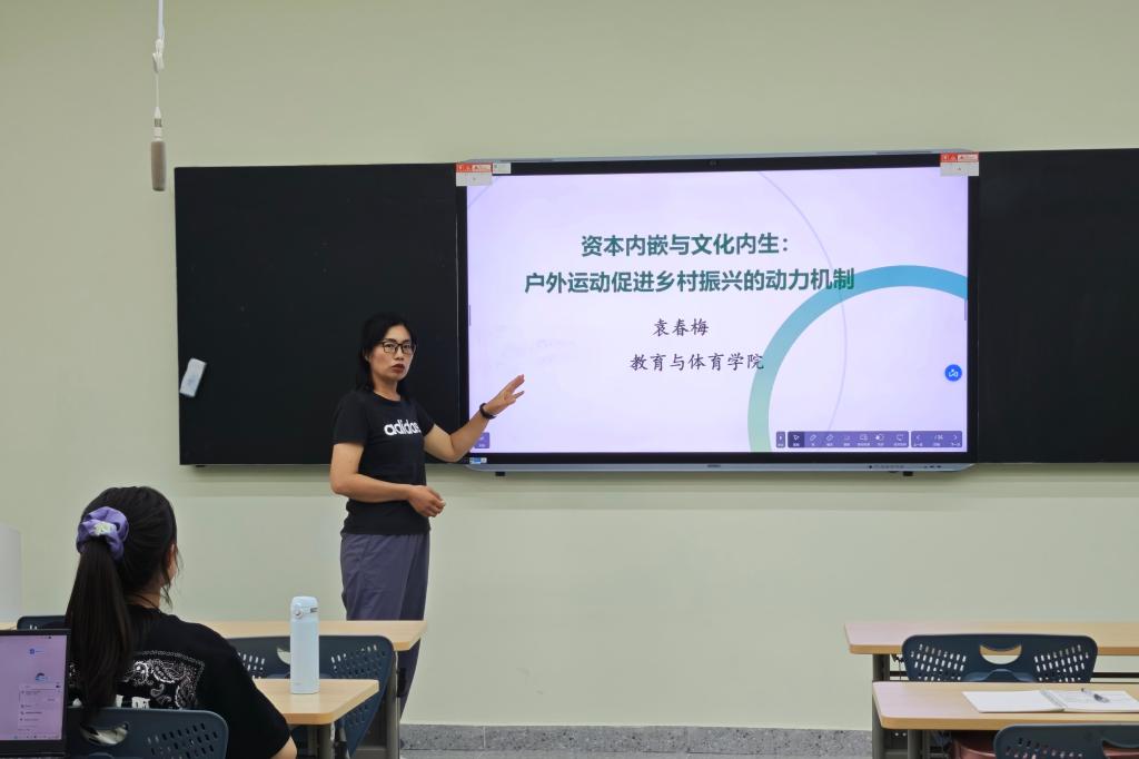 (通讯员 向思懿)2025年5月19日19:00,bat365在线官网平台“求实导师学术沙龙”在16教A区103举行,袁春梅博士以《资本内嵌与文化内生:户外运动促进乡村振兴的动力机制》为题进行了分享,2023级、2024级30余名体育类研究生参加了本次活动。