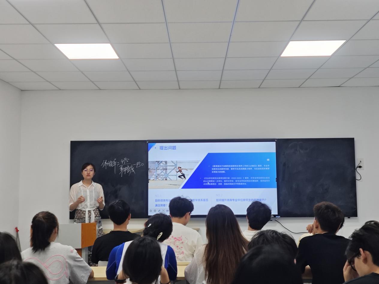 活动中,樊翠红老师从研究背景与问题提出、研究理论与现状分析,实践能力提升策略三个方面展开。在国家对专业学位研究生教育的日益重视的背景下,樊翠红老师提到当前专业学位研究生教育中仍存在重学术轻实践的观念,以及教学内容、方法与社会实际需求脱节等问题。