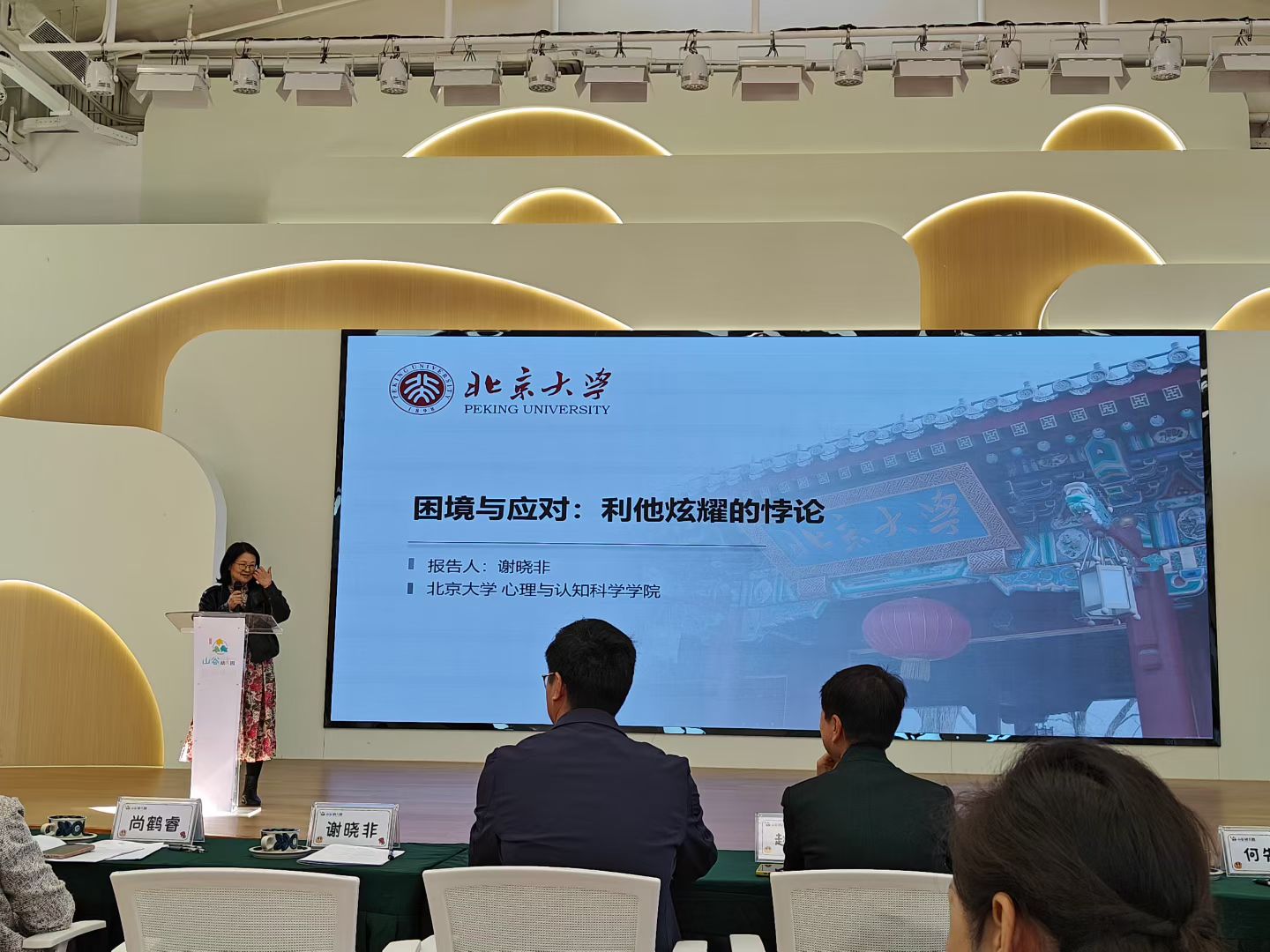 论坛开幕式后,特邀报告环节精彩纷呈。北京大学心理与认知科学学院谢晓非教授率先登场,以《困境与应对:利他炫耀的悖论》为题,分享了其在风险认知与决策领域的最新研究成果。谢教授深入剖析了利他行为中的特殊心理现象,提出了兼具理论深度与实践价值的应对思路,引发全场热烈反响。在谢晓非教授报告结束后,现场播放了时长20分钟的莫雷教授学术生涯纪录片。纪录片系统梳理了华南师范大学文科资深教授、国家级教学名师莫雷先生的学术历程,全景展现了他在语言心理与学习认知过程领域的深耕探索,包括主持国家重大科研项目、构建原创性学习教学理论、培养顶尖学术人才等重要成就,其深耕科研、潜心育人的精神赢得了在场嘉宾的由衷敬佩,为论坛营造了浓厚的学术氛围与精神传承氛围。