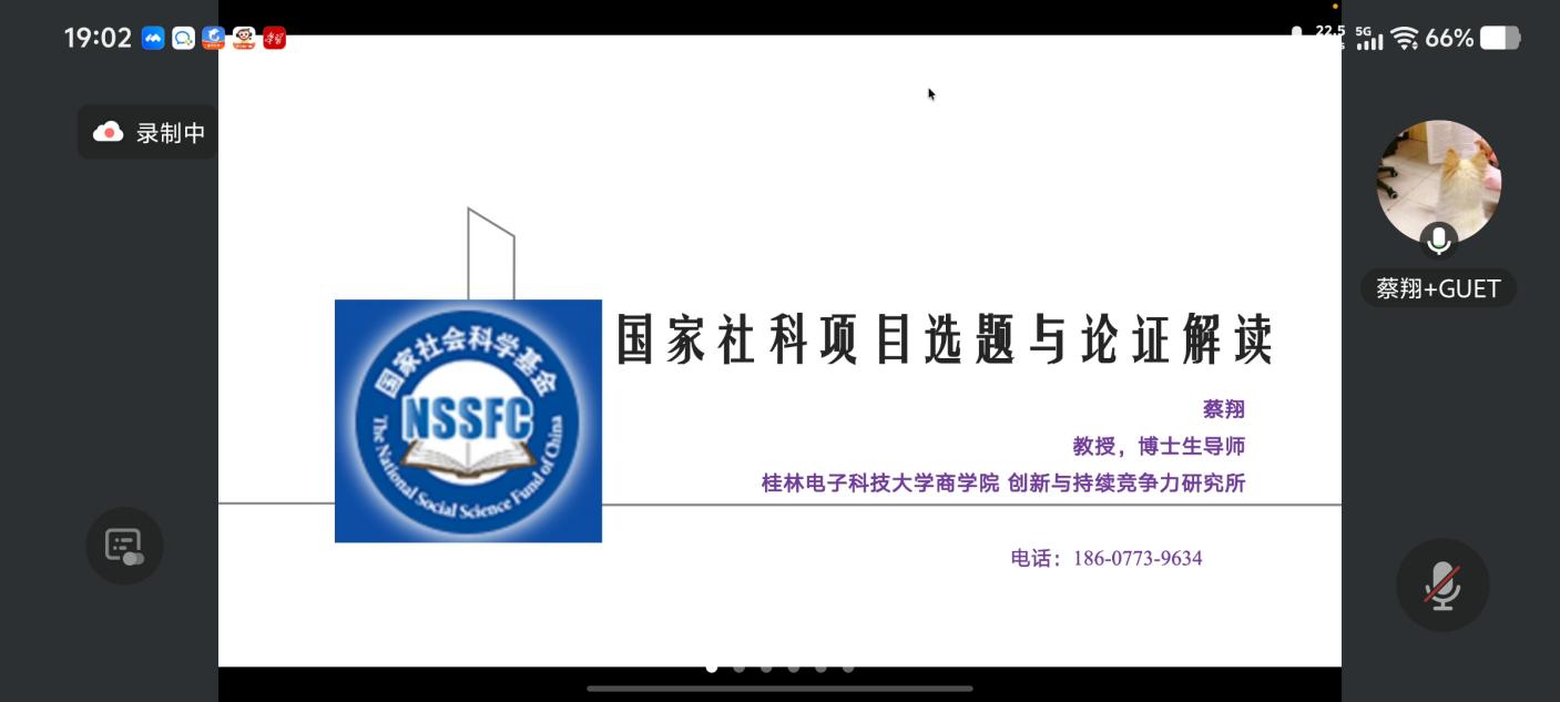 (通讯员 卢小琴)2026年2月6日晚,bat365在线官网平台以线上形式成功举办国家社科基金申报辅导会。会议由院长助理严磊博士主持,特邀资深专家蔡翔教授为学院教师精准解读国家社科基金申报的选题技巧与论证范式,助力提升申报质量。学院全体拟申报国家社科基金项目的教师参与本次辅导,为新一轮项目申报筑牢基础。